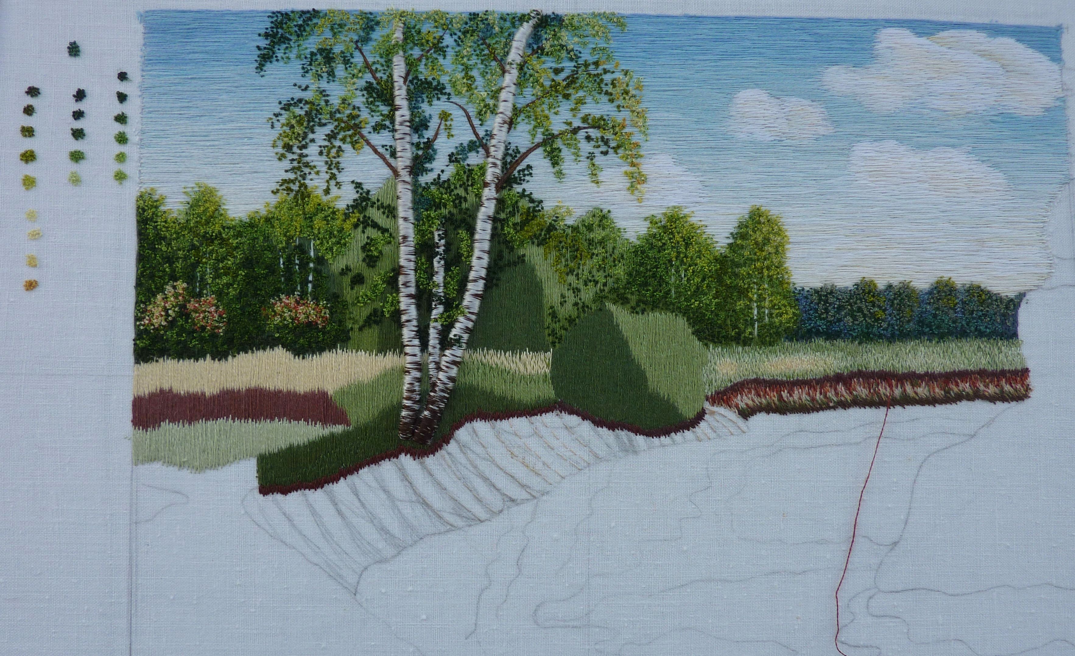 Ириша, на мой взгляд береза приобретает естественный вид. Осталась самая малость чтобы мы с тобой а потом и все кто будет любоваться твоей вышивкой получали удовольствие от такого живого пейзажа.